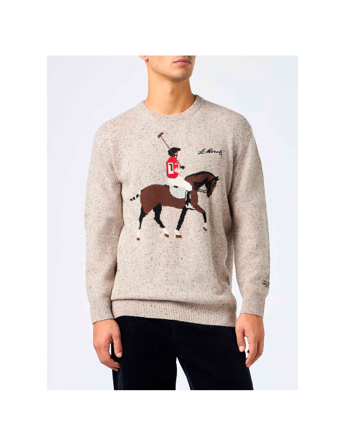 Este jersey premium de la linea HERON de MC2, está realizado con lana y cashmere para un confort extra en tus días de invierno. Con dibujo de un jugador de polo impreso en la lana. Corte Regular.